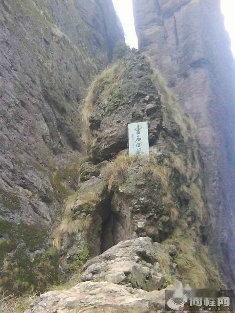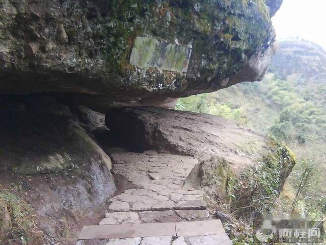 开明禅寺后面才是正式上山道路,之前是餐前小菜让你活络下筋骨,会仙岩这里要猫着身子走过,据说因为丹霞地貌的关系,中间的沙土层被风化,才会形成凹进去的溶洞,顶上可见斑驳的硕石层,然后山路就开始陡峭,经过百步峡,到一个分岔口,一边是一线天,另一边霞客亭,寻思一下,给自己4小时的时间,绰绰有余了,既来之则爬之,向前go!