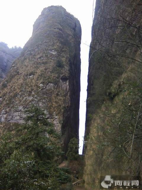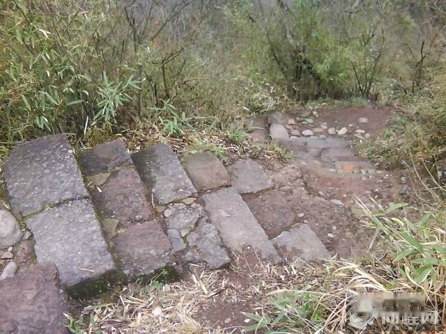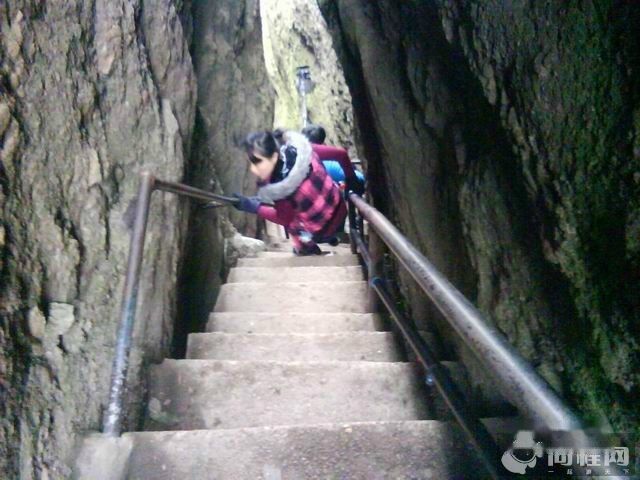 开始陡峭的山路,只能一人通行,胖子要侧身过了:)