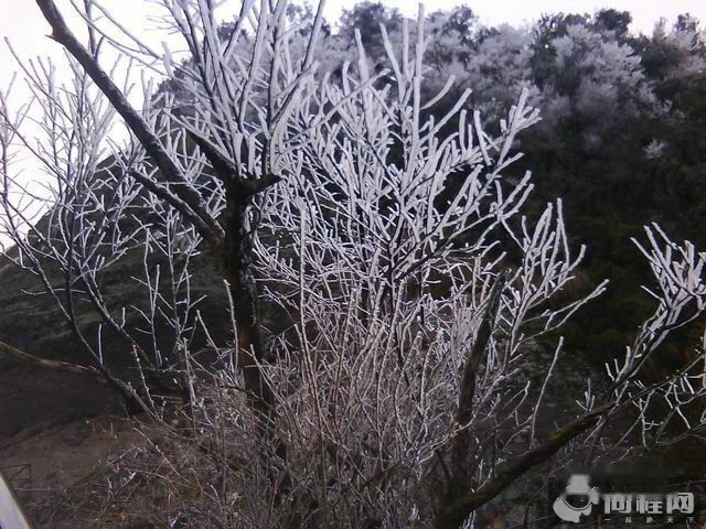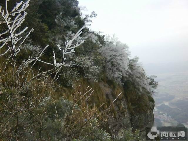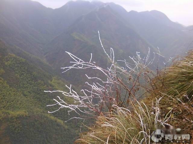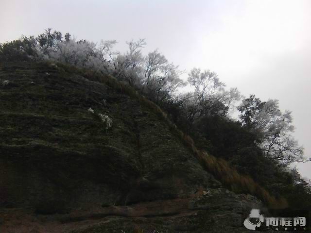 越往上,感觉越冷,一路的树冰花结的真好看,这个时候碰见了准备下山的上海朋友,他们说要原路返回,说下山的路很难走,原路下山还比较好走,互相道别之后,我继续上峰顶,站在问天亭上有一览众山小的感觉,之前爬过的山和江郎山比起来,真的是小巫见大巫,只能算是山谷呢。有带着碗面滴,本想在售货亭买点开水,询问之下要10元,额滴神,天水啊!老头说,这里的东西都是要背上来的,没办法,我就啃了个蛇果,吃了几片面包,等下山再吃东西吧。
