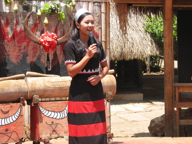 也许是民族村最美丽的女孩介绍说佤族是以黑为美,越黑越美,可惜小雪没来,否则她一定是佤族小伙眼中惊世骇俗的美女。本来想找那个最美丽的佤族女孩合影,可低头看看自己雪白的皮肤,估计她一定认为我很丑,于是悻悻地离开了。