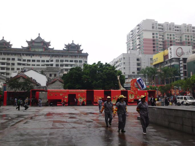 重点看前面红色的铁皮,创意广告。里面可以提供人们休息的座椅