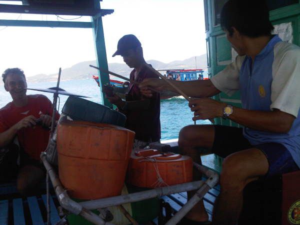 真不知道越南的商家怎么赚钱,一船20个客人不到,总共收入100美元/天,四个船员,除了开船做饭还又唱又跳。在中国这样的服务,至少收费每人300元。可能越南只有10%的税,或者这些私家船不用交税吧。