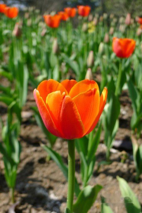 顶着正午的烈日,一边欣赏公园美景,一边寻找盛开的郁金香。偌大个公园,只看到一小小片橙色的郁金香盛开了,虽然面积不大,但绚烂娇艳、楚楚动人,吸引了不少游客围观、拍照,我也使出L5的多功能,大景深、小景深地狠狠拍了一阵子。