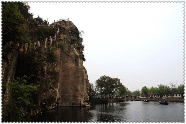 游东湖,陆路探幽访胜,别有野趣幽情。湖两边都有路,外面一条是白玉长堤,垂柳成行,一步一景,景随步移。里面一条在山水间,纤道如线,曲曲折折,时断时续,时隐时显,一边是湖水碧绿,一边是陡壁千仞,有时把山水分开,有时却在湖中,远远望去,人行其上如在水面凌波而行。