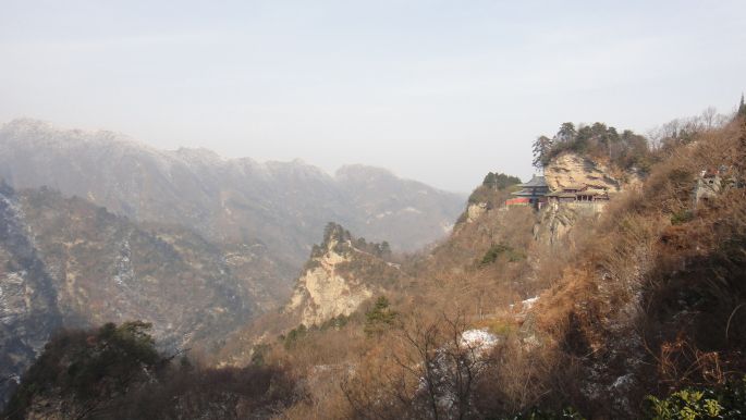 酒店包早餐,大吃特吃以后,顺了一个煮鸡蛋,退房,上山,方向,南岩。照片中右侧的建筑就是南岩,中间的小山是玄武飞升崖。
