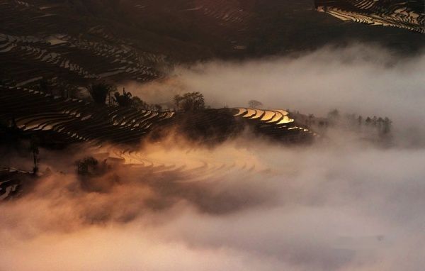 第三天一早又出发,但是雾太大,一上午无收获,本以为没戏了,但下午情况突变,我们赶到坝达拍日落。坝达一片云海,梯田在移动的云海下若隐若现。抓紧机会,在一阵快门声中留下了坝达日落的美丽瞬间。