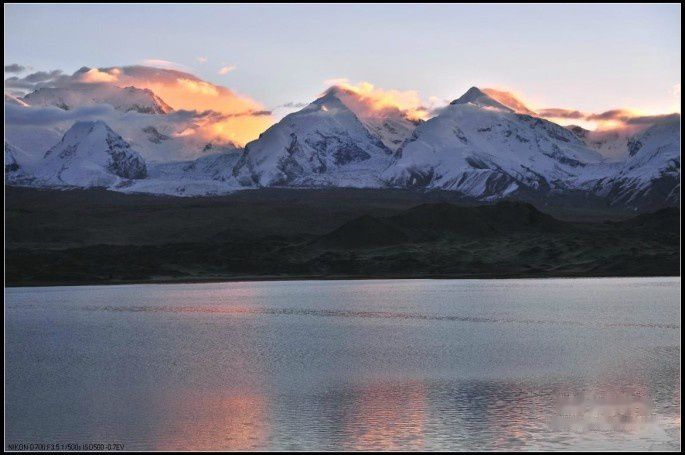 丛塔什库尔干县走314国道,上午9:10左右到达了卡湖,慕士塔格冰峰。慕士塔格峰,位于阿克陶县与塔什库尔干塔吉克自治县交界处,海拔7546m,是昆仑山脉的主峰之一。和慕士塔格峰遥遥相望的是公格尔峰,海拔7719米,是昆仑山最高峰,与公格尔并肩而立的是她的姊妹公格尔九别峰,并称姊妹峰。此时天还未放亮,爬上湖边的土坡上,等待着阳光的到来。冷,刺骨的冷,站在3000多米高的山上,让高原的风尽情吹透整个身子!雪峰下面卡湖水面上飘浮着冰凌。