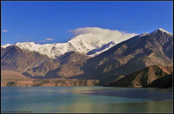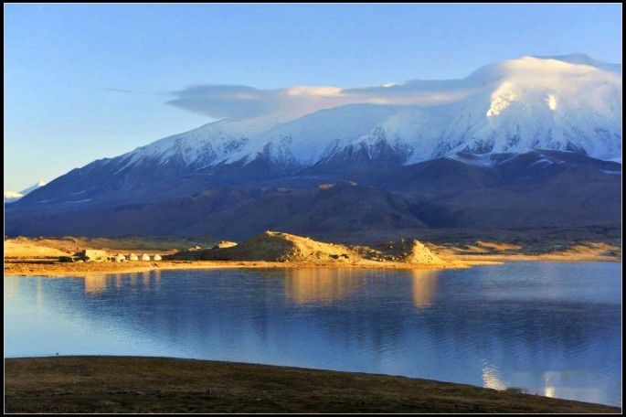 这时的颜色是雪山白、天色蓝、湖水透、山体黄,真是一片仙境。昆仑三雄公格尔山、公格尔九别峰和慕士塔格峰的冰川融水孕育了卡湖和布伦口湿地。雪山冰峰卡湖,美丽壮观的自然景观,是那么震撼人心,高原的湖光山色美不胜收!让我们这些初来乍到者置身其间,很容易丢失了自己。