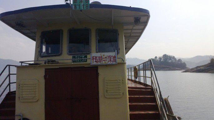 新安江和千岛湖,朋友讲值得一看。于是今天我抽空走了一趟。25号一早我黄山市出发坐上从屯溪到深渡的班车,6点发车,车费14元。到深渡码头刚好赶上深渡到千岛湖的班船。不是游船哦 游船要200多,我可不花那冤枉钱。早就听说千岛湖岛上没啥好看