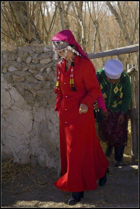 巧遇一对新人,一般11月,是塔吉克人结婚的季节。塔吉克的女人穿着色彩鲜艳的衣服,很似俄罗斯民族服装,长皮靴、红裙子头戴高顶花帽子。我们巧遇的这对新人,刚结婚不久。