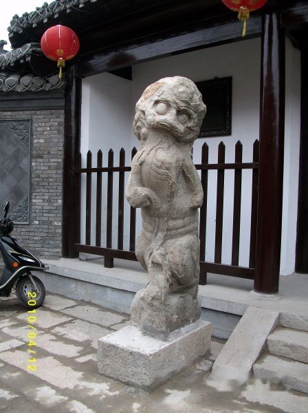 兴化县署,现在是范仲淹纪念馆,请看门前的那两对石狮,是狮身猴面,奇特吧!