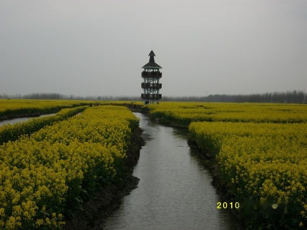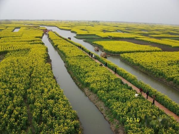 别处观赏油菜花是在陆地或田埂上,而兴化缸顾观赏油菜花是在水中船上。