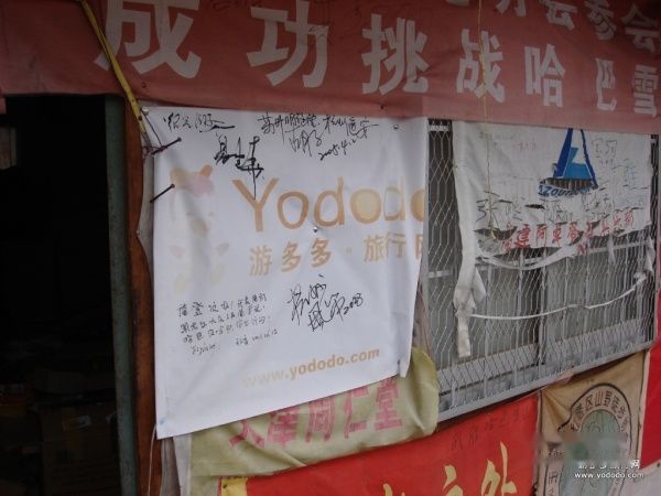 凌晨4点,我们从师父的k2国际青年旅店出发,中间在虎跳峡等待从南京赶过来的老周大哥.这样我们逃过了虎跳峡的门票.嘿嘿.大概10点多我们到达海拔2700米左右的哈巴村,在这里还发现了多多的旗帜,嘿嘿,有点意外...