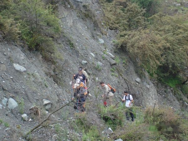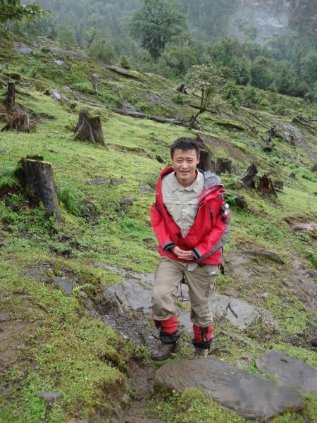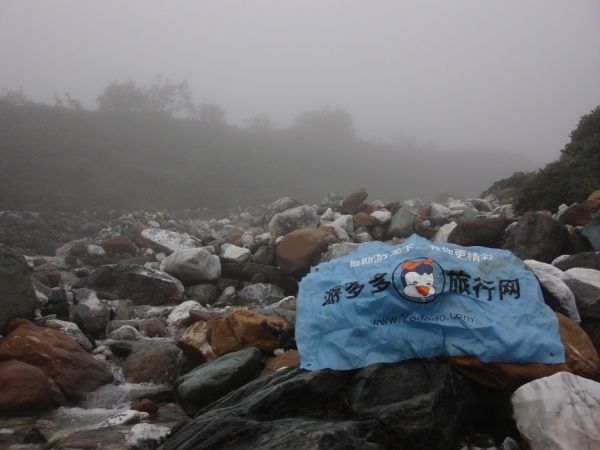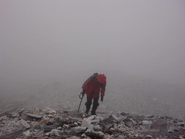 出发了20分钟,强哥感觉呼吸有些紧了,就下撤了,连同被落在后面的大林子和老刘一起返回大本营了,此时就剩了老周大哥,湖北大哥和我以及我们的2个向导.雨突然下大,我们找了块大石头避雨,向导一直建议我们下撤,但是在我的一再坚持下,我们决定继续冒雨前行(师父说了,向导会建议你下去,你要坚持上就可以了).湖北大哥走的比较慢,我们决定,我和老周大哥跟向导小何大哥走前面,另一个向导和他在后面慢慢上.