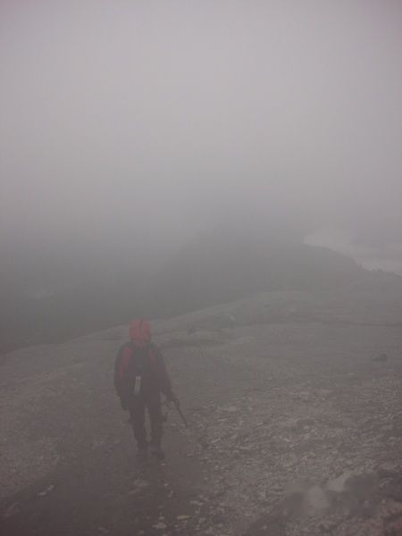 第2天凌晨3点半,起床,失望!外面依然好大雨声,老高和火山大哥决定继续睡觉不冲顶,我们仍坚持上山,尤其是我,我来一次不容易,就是下刀子我都想上去.厨师给我们做好饭,到5点,看着雨下的小点了,我们就出发了...冲顶!其实现在距离顶部还有1300多米的相对高度.