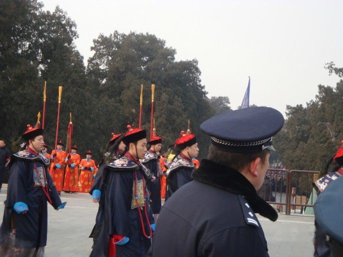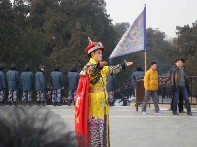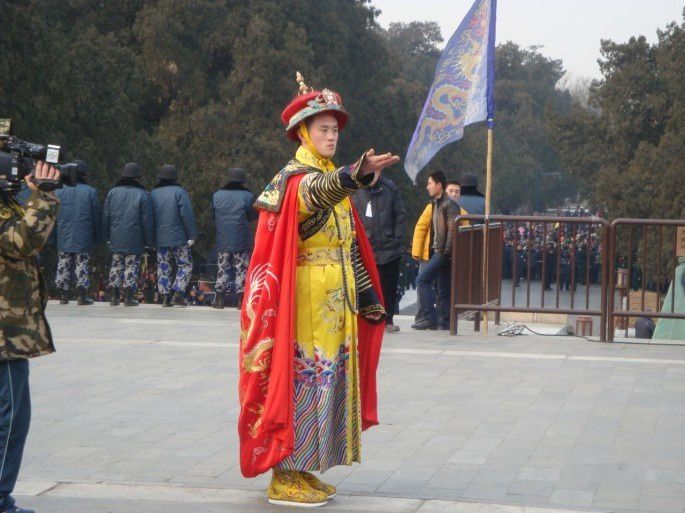 2013年2月11日,(正月初二),天气阴,气温较低。我今天早早就来到天坛公园,准备观看皇帝的祭天礼仪表演。今年春节期间,从农历大年初一至初五,北京天坛公园将为中外游客呈献一台气势宏伟、精彩绝伦的祭天礼乐盛典。届时,浩荡的仪仗表演,将再现昔日大驾卤簿的庄严与震撼;翩跹的乐舞演绎文治武功的骄傲与辉煌。