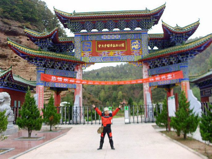 第二天起来上好装备,吃了早饭加好油,开始今天的行程。今天的终点是平路市,中间有两个景点。云崖寺石窟和六盘山森林公园。云崖寺位于庄浪县城以东28公处的关山林场,总面积43.4平方公里,水域面积0.37平方公里。自然景观极为优美,石窟艺术闻名遐迩。被誉为“陇上名珠”可与天水麦积山,平凉崆峒山相媲美。是国家森林公园,国家级文物保护单位,国家水利风景区。景区青山碧水,千峰秀丽,云雾缭绕,密林参天,流水淙综,层林尽染,万紫千红,美不胜收。(门票60)在景区游玩碰上了我们俱乐部的两位摩友,多吉和另一个忘了叫???。聊了一会我们各自游玩去了,多吉骑车从318国道进藏厉害。在景区进了餐(自己带的食品 ),我们开始往回走了。这次出门不知怎么了相机时好时坏,不知什么原因。这时感觉左脚有点支不住车。我看大家上座发车就在前面走了,没有想到出事了,我的两个同事超了我,后面就是两轮风景了。到了关山隧道镜子没有看到他,于是我停下等等他。左等不来右等不来是不是有什么事??掉头回去迎一下他,一直到景区门口都没见他,打电话问问——天啊人家居然走错了方向。赶紧掉头回到景区我在这等你,出了这事是我的责任,要求他们有团队精神而我确没有执行好。唉往后可要注意了。不一会他过来了我们要求上路了,两位同事等了1个小时。走到一个村镇老天开始下雨,停车穿雨衣继续上路,不一会来到了经源县城。一打听我计划的那条路在修过不去,问路变知只有走到312国道才能到平凉。