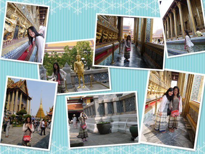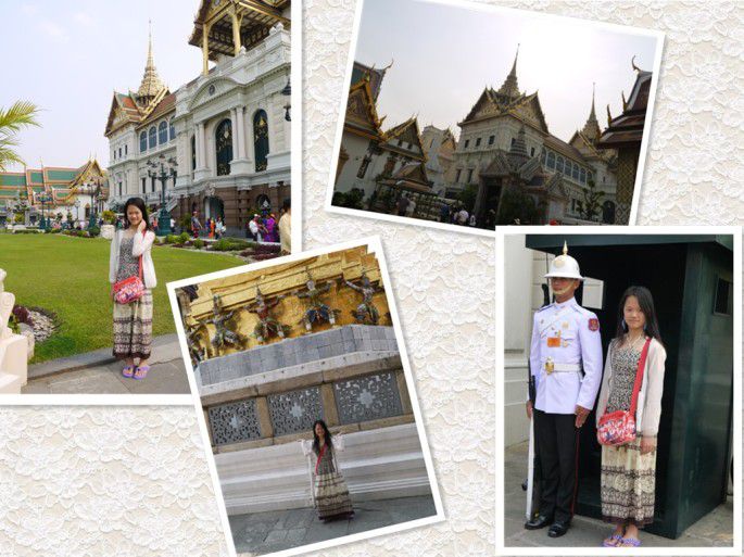 这个卧佛其实挺妩媚的有木有~~接下来就进大皇宫了,门票是500B一人,那里有衣着要求,女生可以参照我的穿法(无袖和短裤是禁止的,门口租衣服的租的也是长裙不好看还不如穿自己的去),男生就不知道具体什么标准了,有些穿紧身牛仔裤的也不行但有的又行(估计是逃过了守卫的人~)。。上图(各种乱拍和被偷拍~)