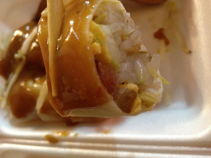 另一位,是在一个岔路口,左手边往中国城方向,右手边去酒店,当时刚好有一个骑摩托的当地人停在路边,看到我们的装扮直接告诉我们去中国城的方向,我们顺口说要回酒店,他便很热情的告诉我们了正确的方向,之后便一溜烟的离开了,冥冥中自有定数吧,呵呵;之后还打包了一份当地的小吃,而且是用纸包着的,价值RMB12真的是超实惠,虽然一直对于走小巷有种恐惧感,特别是黑黑的小巷,但收获和付出有时真的会成正比滴;
