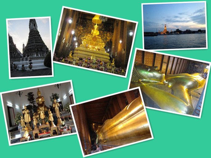 这里的船不一样,要根据旗帜看清要坐的船。我们本来要坐的是15b一个人的船,那种船上边有黄色和蓝条色两种旗,由于没有经验坐了80b两人的船,不过这种船可以站在船头拍照,好多老外坐。8号码头沿着路走出来右手边路对面就是卧佛寺,门票200b两人。每张票包一瓶免费水,因为出酒店时自备了水,所以逛出来后也没有去领。