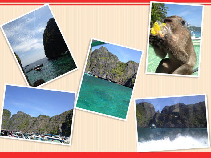 第一站是玛雅湾,因里昂纳多的电影《海滩》而出名,后有30分钟游泳和照相的时间,一直以来不喜欢跟团游的原因就是不能时间自己。到这里就会发现老外抓紧时间游泳,中国人抓紧时间照相。之后船又开着在附近转,导游讲解完全听不懂,因为用的全是俄语(真TM郁闷);之后看了007黄金岛的拍摄取景地,便转去了猴子岛,一直有个疑问是说猴子在岛上饿了会有游客给吃的,但渴了,有淡水喝吗?