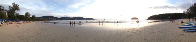 18:00,迎着落日,带着余辉,乘车踏上了去卡塔海滩的未知探索,在卡塔看落日,卡塔白沙细软,水波平平。海滩上边的街市还有整条街的小吃小玩意,本来就很窄的路,现在变的就更窄了,再加上摩托车和店子显得就更拥挤了,不喜欢,顿时失去了再前行的动力,在这里我们就返回了。