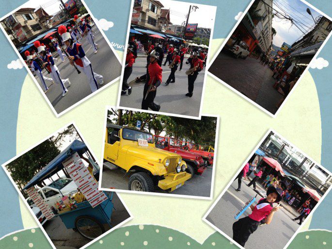 由于今天是泰国国王85岁的生日,芭东有组织表演游行之类的,道路暂时戒严,我们也顺便看了他们国家的游行表演。