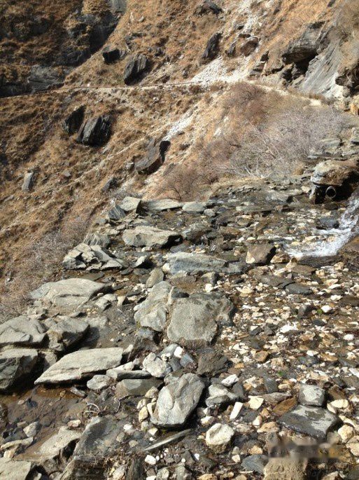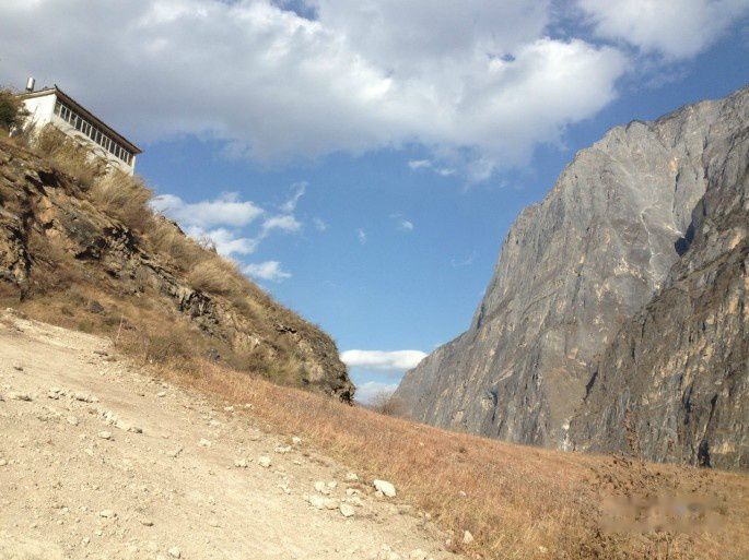 于中午11:00左右在halfway就餐完毕,开始徒步,或者是因为一开始的路不算难走吧,虽然从旁边看下去挺吓人的,但至少路是平的,所以一开始的我们,还是有说有笑,一直拍照,将哈巴雪山与玉龙雪山一起看了个够。。。当时心中所感怎一个豪气了得?然而。。。我发现自己还是太天真,太天真,好戏还在后头。。以至于后来的我们根本没了拿相机拍照的勇气(遗憾啊),一路上窜下跳,还得带攀爬的那种,最坑爹的是我还穿了平底鞋,走下坡时那叫一个虚啊。。一个不好,估计就只能被悼念了。。。最让我惊奇的还是我们家胖胖,她一个病怏怏的人,爬这个时候比我猛多了。。我那个羞啊。。。。