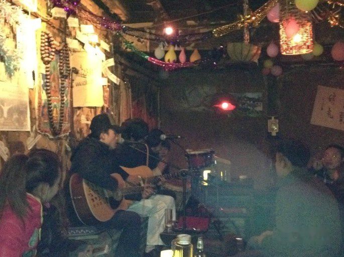 2013.1.15,白天在宾馆活活宅了一天,最悲催的是手机还进水了。。到处找人修啊。。苦逼的我啊。。真系没钱了啊。。。晚上又果断去了天天鲜搓了一顿,当然还是我们几个。。然后就开始找酒吧,最后选定了“故事”,感觉比昨天晚上的好多了,安安静静的,还算挺有味道的。。最好玩的是,我们这个奇葩的一桌,后来又因为我们奇葩的组合(之前都是互不相识的,是之后才认识的),加入了很多的人。大家一起唱歌,玩骰子。最后,酒吧主唱轩轩和番茄都加入了进来,这感觉简直不摆了。怎一个嗨字了得。。。但是快乐的时光总是短暂的,凌晨一点到了不得不回去的时候了,大家也就再此一别了,互道了一声珍重,丽江也即将与你拜拜。。