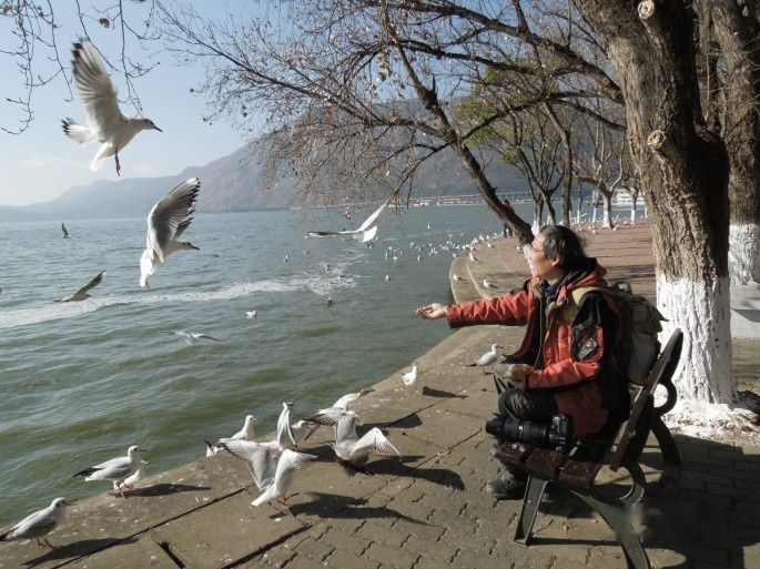 海鸥年年来,而当地百姓们是把它们当成家庭成员,生活的一部分了,当我们问到海埂大堤怎么走时,当地百姓回应:去喂海鸥呵。。。。。。