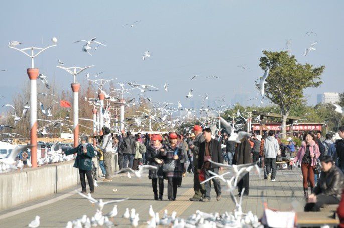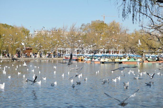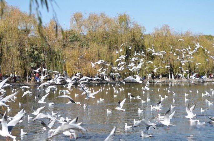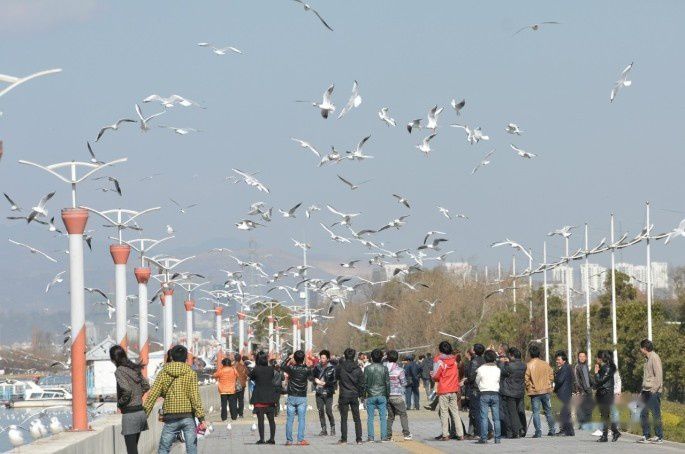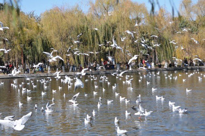 海鸥给昆明这座城市带来无限的吸引力,给昆明人带来太多的愉悦,幸福,满足和骄傲,翠湖公园边上因此有个以海鸥命名的宾馆,年年能与如此无法计数的海鸥共同生活在同一片蓝天下