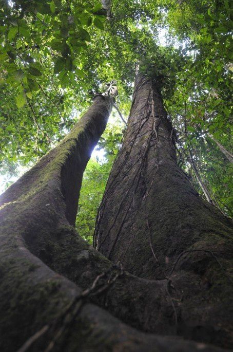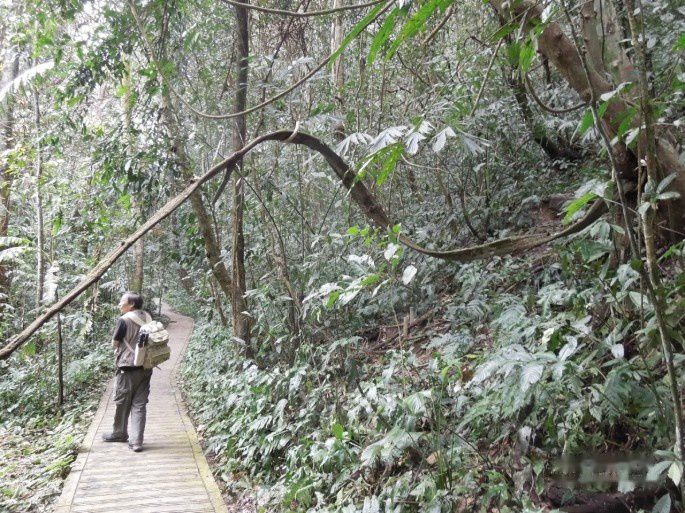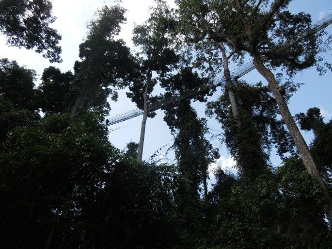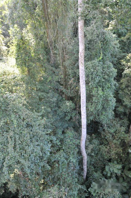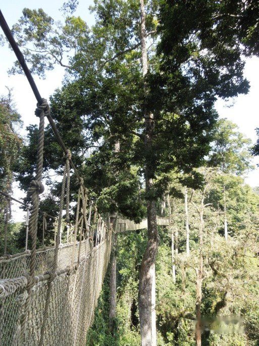 - 我其实很恐高的,家里窗玻璃宁脏不擦。空中走廊的建造者想的很周到,上去走几步实在不行还有另一条通道转回,我们上的时候就有不止一人正在下撤,可是“树冠走廊”诱惑实在太大,我不想留下终生遗憾,强作镇定走完,一路上整个人都是抖的,尤其踩上每棵树干的铁围栏,空隙很大,固定树干的也蛮原始的,树笔直笔直的,离地面太高,从上面看下去,人就像蚂蚁了
