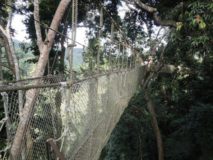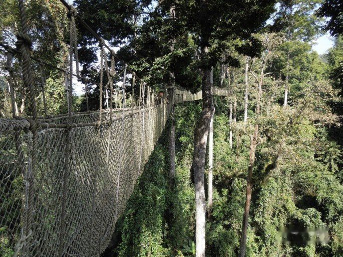 上个世纪90年代,美国植物学家摩尔为了近距离、多角度观察野生动物活动踪迹和望天树热带雨林,与当地政府共同修建了凌空36米,长达500米,——“望天树空中走廊”。