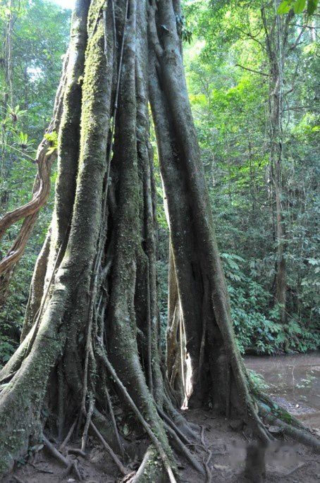 站在景区出口,回头看望天树景区,回味在静静的遮天蔽日的热带丛林中,有高高的名贵珍稀的树种