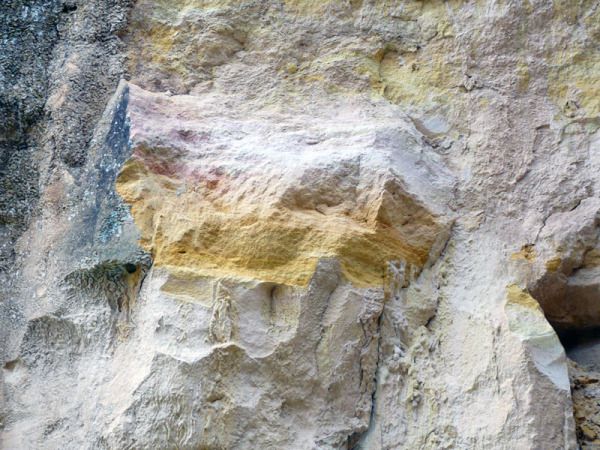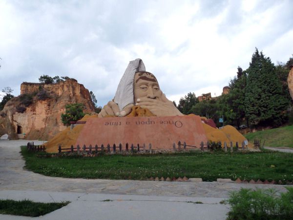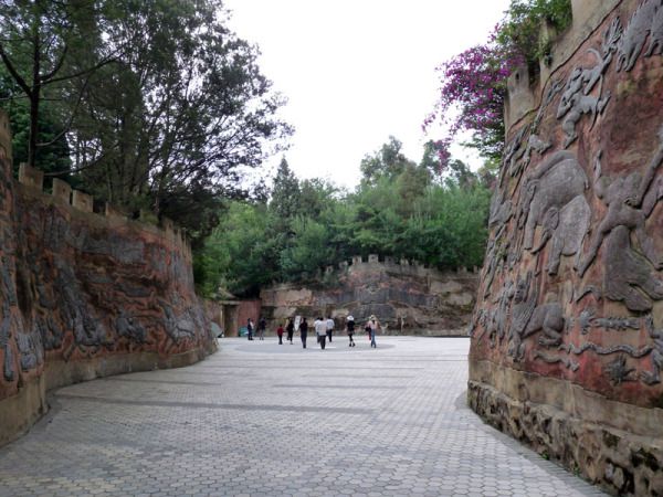 步入景区,前半部分展示的是各种人工雕塑,而后,是七彩沙子凝聚起来的沙柱、沙峰、沙屏、沙皱的集合体。这才是彩色沙林的精华之处。