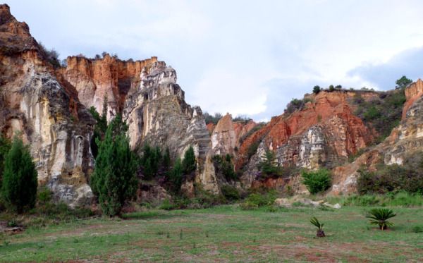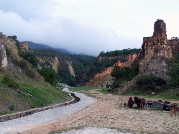 彩色沙林是大自然千万年来演变的结果;是地震冲击、岩浆喷射、地壳运动、风雨侵蚀逐步形成的千姿百态的地貌奇观,整個沙林 呈“Y”字形,占地約6平方公里,以黃、白、紅、灰为主色調。