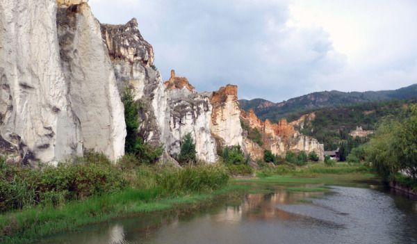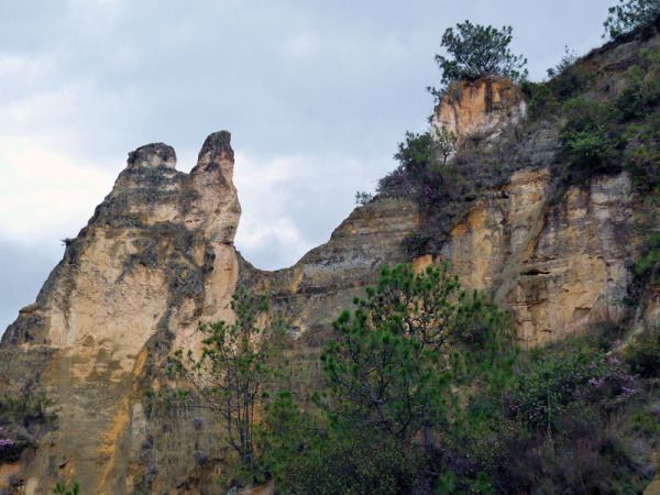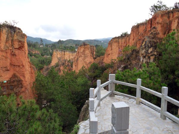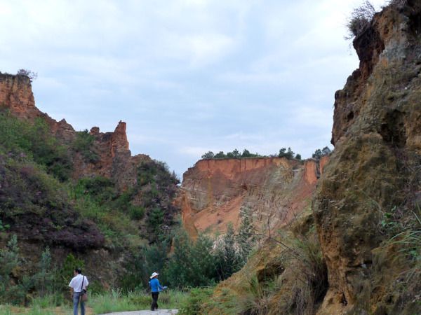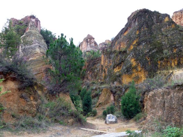 天阴阴的,时而飘下些许小雨点,也许是天气的原因吧,映入我们眼帘的彩色沙林冷冷清清不见几个人影,全然没有石林景区的热闹劲儿。景区的门票也因时值下午而打对折为50元/人。