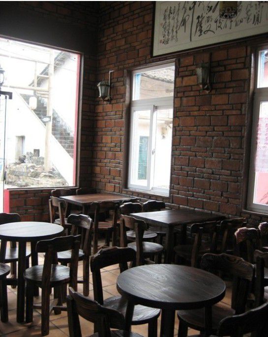 一座粉红色外墙配蓝色窗框的小房子跳入眼帘,好漂亮哦,多像小时候童话书里的小屋。刚想拿起相机疯狂拍照,老板热情的招呼说里面更漂亮很适合拍照留念。那我们就不客气咯,店里所有的座椅都是松木做的还能看到清晰的木纹,红砖墙勾黑缝配上金属壁灯,整间屋子都是古色古香的;