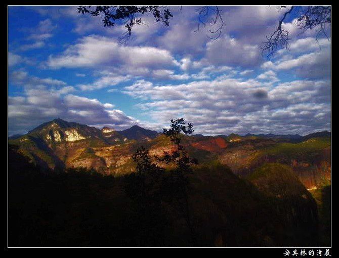 初冬的黎明还不太冷,天依旧湛蓝,清晨享受着缕缕朝阳,江山说:去格拉丹之前先来个热身吧,当然啊,论爬山我从不输江山。“到安其林山顶再看日出”。通向安其林的栈道确实是一个松筋活骨的好地方,近乎垂直的梯子足可让人爬个脚瘫手软。
