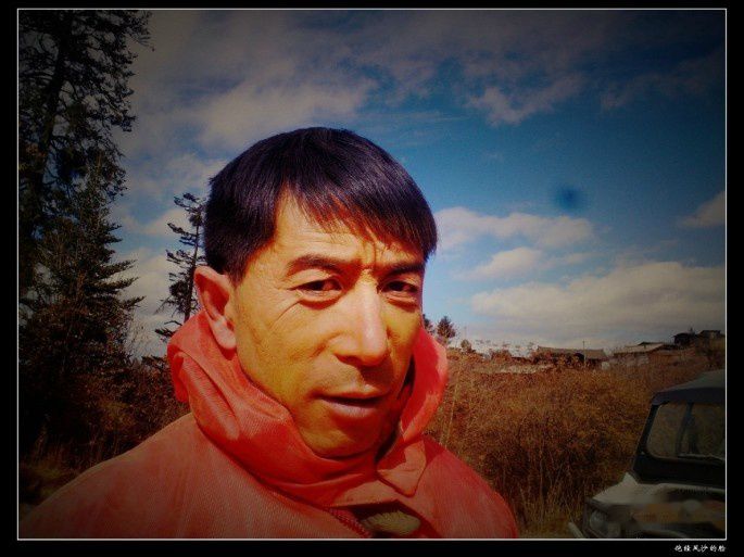 正遐想间,风和机器的声音忽然平息下来,原来车已经停在了山腰,灰土喘息着退下,暂时放过了我们。再回头一看,老李的脸覆盖着一层厚重的尘土,唯见红胀的双眼,层层灰尘粉过的皱纹,哈哈,活像个活人版兵马俑。