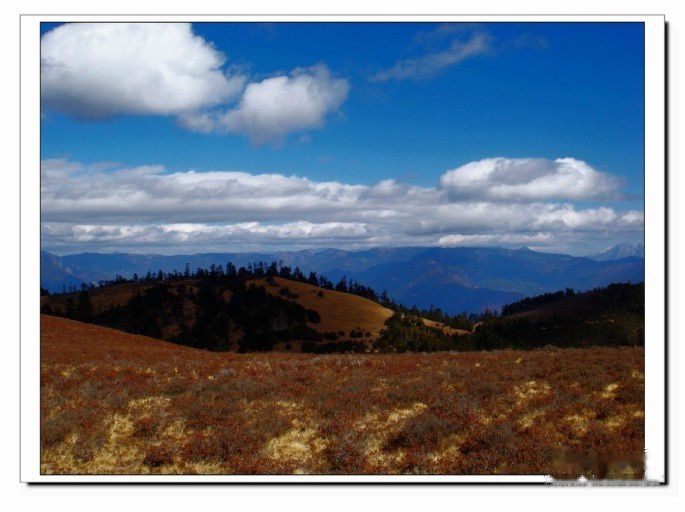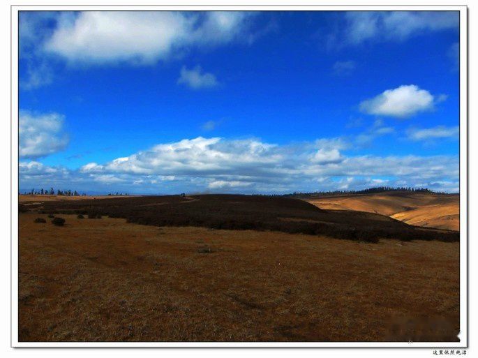 嘻哈之余留下倩影继续赶路,到了金色的草原和蓝灰色的天际拥抱的那一线,格拉丹到了!湛蓝的天际之下,宁静的空气中捎带着纯正的泥土气息和枯草的味道,大片的高山杜鹃花沉默地卷起叶子,懒散地躺在这衰草起伏的草原上等待着春风的君临,不远处郁郁葱葱的苍天大树经受了数百年沧桑,白马雪山、玉龙雪山清晰可见。置身于此,心灵瞬间沉淀下来,没有烦扰、没有浮躁,更没有电视里庸俗娱乐,只有寸寸阳光在草地上挪动,还有自己的心跳声咄咄胸膛间要发出歌声。