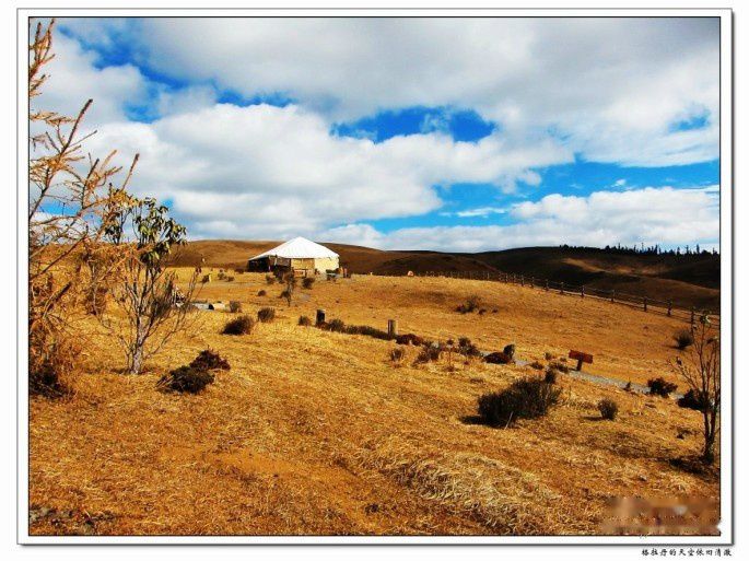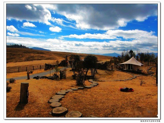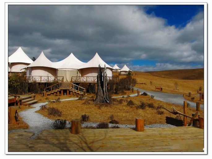 即便在如此纯净偏远的地方也少不了开发者的足迹,一家公司持重金在此打造了一座帐篷高端酒店,预备以每晚300美金以上的房费为社会精英和有钱没地方受罪的人士提供专属净土感受。一顶顶白色的帐篷错落撒在这高山草原之上倒是与风景很和谐的,却有一番塞外的味道。帐篷内虽然装修简单也不失风格,还配有地暖、自来水和排污设施,实在冷了还有电热毯,考虑的还算周全。帐篷驻地海拔3490米,要在这静待几日和饱睡他几晚确实是对饱受剩余幸福折磨的社会精英们有益处的,说不定一路的尘土会让他们幻想起这是撒哈拉的,也许有一天直升飞机会改善路程,但那时这里就不一定还是傈僳族同胞心中的那个开满奇花的格拉丹了。