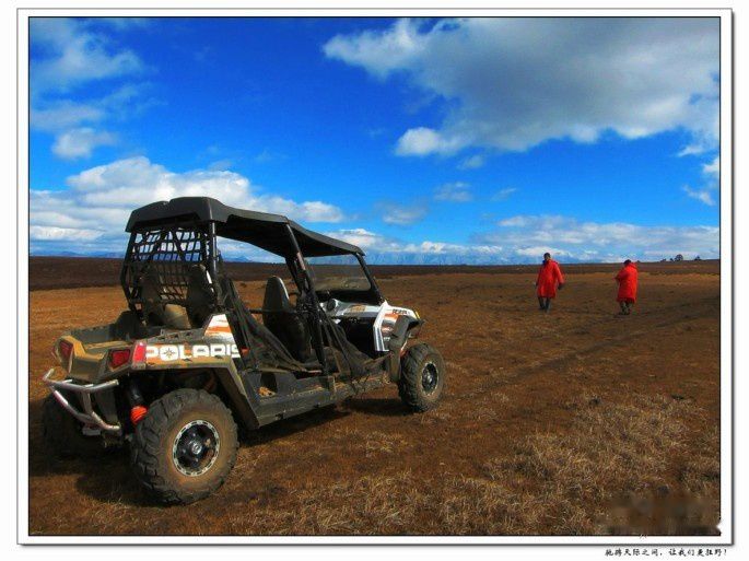 三十多万的进口名车—北极星全地形车却是爬坡上坎的利器,以此为乘上格拉丹必定顺利通行了。一咬牙包了一辆并委任给资深驾驶人老李从容驾驶。老李避重就轻的介绍让我们忽略了防护措施,上格拉丹很刺激,但一路三十多公里的灰土犹如北京沙尘暴一样戕害了我们的视野和呼吸。“这一辈子的灰都吃够了”,江山搓着眼睛恨恨地说。是的,其实我们只要带一个一块钱的口罩就可以抵挡风暴了。