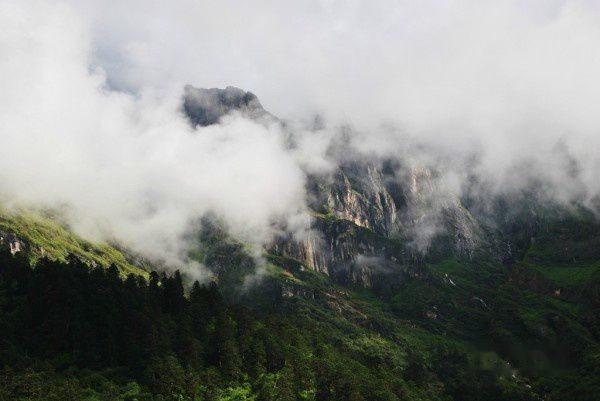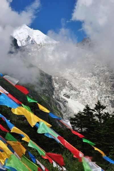 告别贡嘎时,它终于隐在了云雾中。就好像是专门等候我们的到来一样,在我们游览的几小时里,尽管山尖的云雾一直深锁住两旁的山峰,但却始终不曾档在贡嘎主峰身前半分,他就如此慷慨地向我们袒露出它的神圣与伟岸,不留丝毫。
