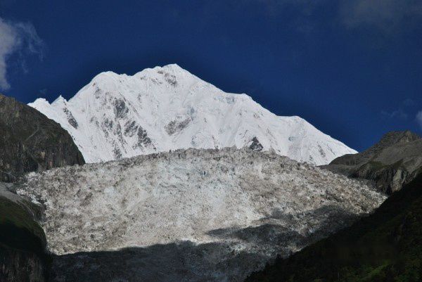 正当缆车上的人们热烈地讨论着冰川的颜色的时候,不知是谁突然惊呼一声:贡嘎!四周即刻鸦雀无声,所有人的目光整齐地投向冰川右上方。