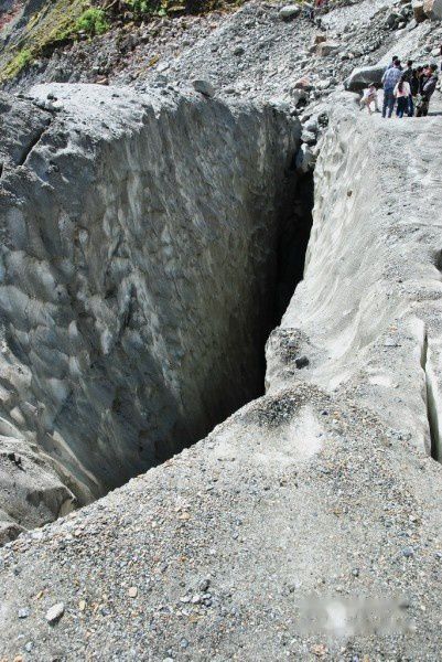 深不见底的冰裂隙,掉下去可不好玩哟!如果你运气极好,兴许数年后能在冰川尽头重见天日。