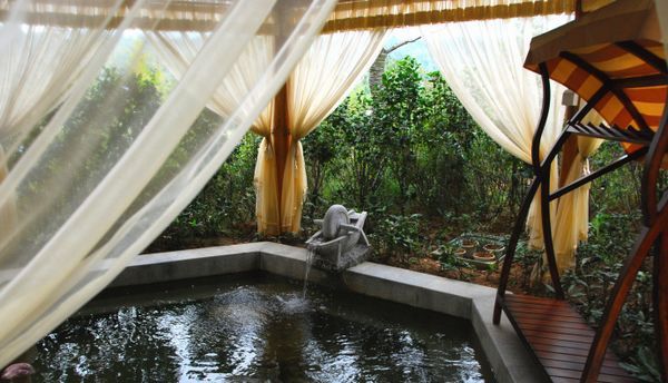 至尊汤屋独具室外泡汤区一隅,可容数人,或以牌会友,或同享SPA理疗服务,亦或干脆闭目养神,睡莲环绕,清波荡漾。