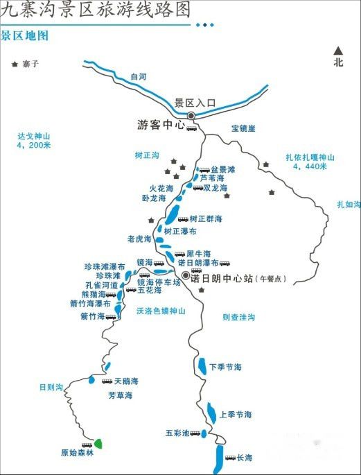 沟内主要都是自己游玩,要控制好各个景点的时间,个人认为:长海、五彩池、镜海、珍珠滩及瀑布、箭竹海、熊猫海、诺日朗瀑布、树正群海及瀑布、火花海、芦苇海、盆景海等景点可以重点游玩。