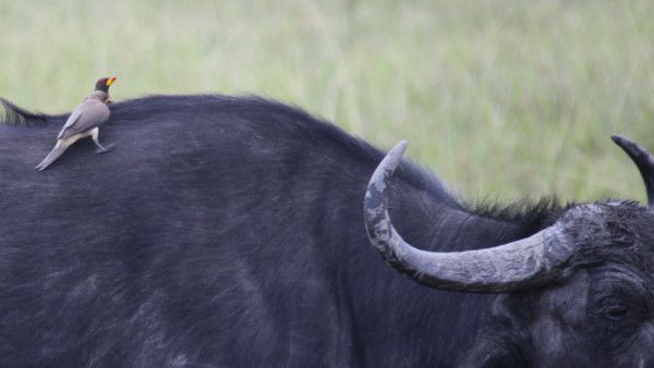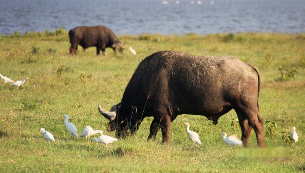 黄嘴牛椋鸟和牛白鹭是非洲水牛的好伙伴,在水牛身边常常可以看见它们。