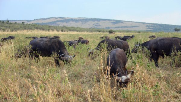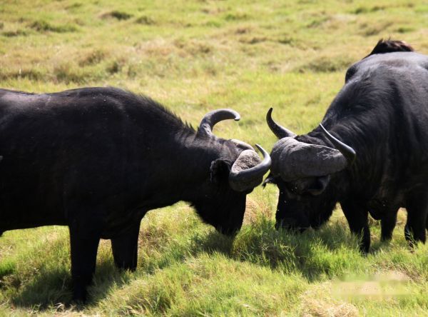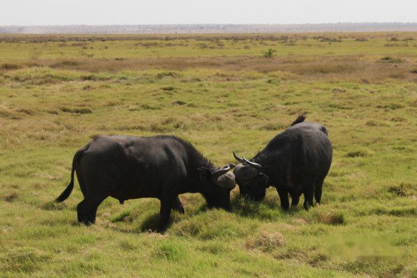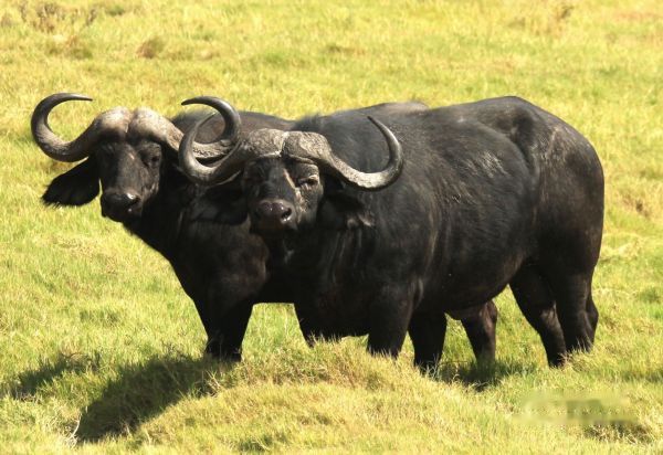 非洲水牛也叫非洲野牛,是非洲五大兽之一,它们生活在非洲广阔的大草原上,我们在肯尼亚和坦桑尼亚的每个国家公园内都看见了水牛。非洲水牛的个头很大,平均身高1.7米,体重最大可达900公斤,雌性的水牛在身高和体重上都要低于雄性。